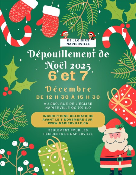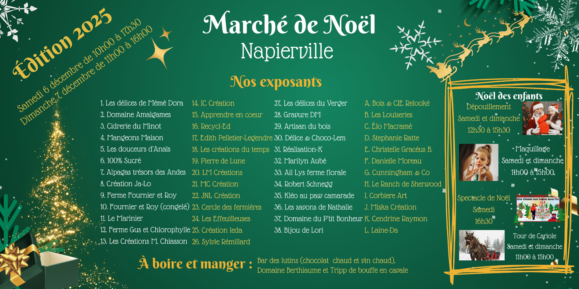 Le temps des Fêtes approche et c'est l'occasion parfaite de venir découvrir le Marché de Noël de Napierville les 6 et 7 décembre 2025 !